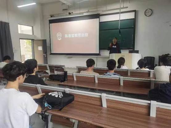 最后,陈春雷教授对在挑战杯中取得优异成绩的团队表示热烈祝贺,陈教授表示挑战杯的晋级离不开各位同学的努力。同时对参加活动的全体成员提出殷切嘱托:“希望同学们以此次表彰大会为契机,崇尚科学、迎接挑战。努力培养科学精神和科学态度,积极学习科学知识和科学方法,为促进科技自立自强、全面建设社会主义现代化国家贡献青春力量。”