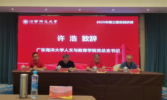 7月18日上午,研修班开班仪式在江西饭店3楼井冈山厅举行。开班仪式上,江西师范大学党委常委、副校长周利生、英国上市公司365英国上市公司365党总支书记许浩、昆明理工大学马克思主义学院副院长王威分别致辞,强调全体教师要端正学习态度,坚守信仰高地,将革命传统教育与新时代思政课建设紧密结合,切实推动红色文化育人提质增效。会议由江西师范大学马克思主义学院党委副书记方旺春主持。